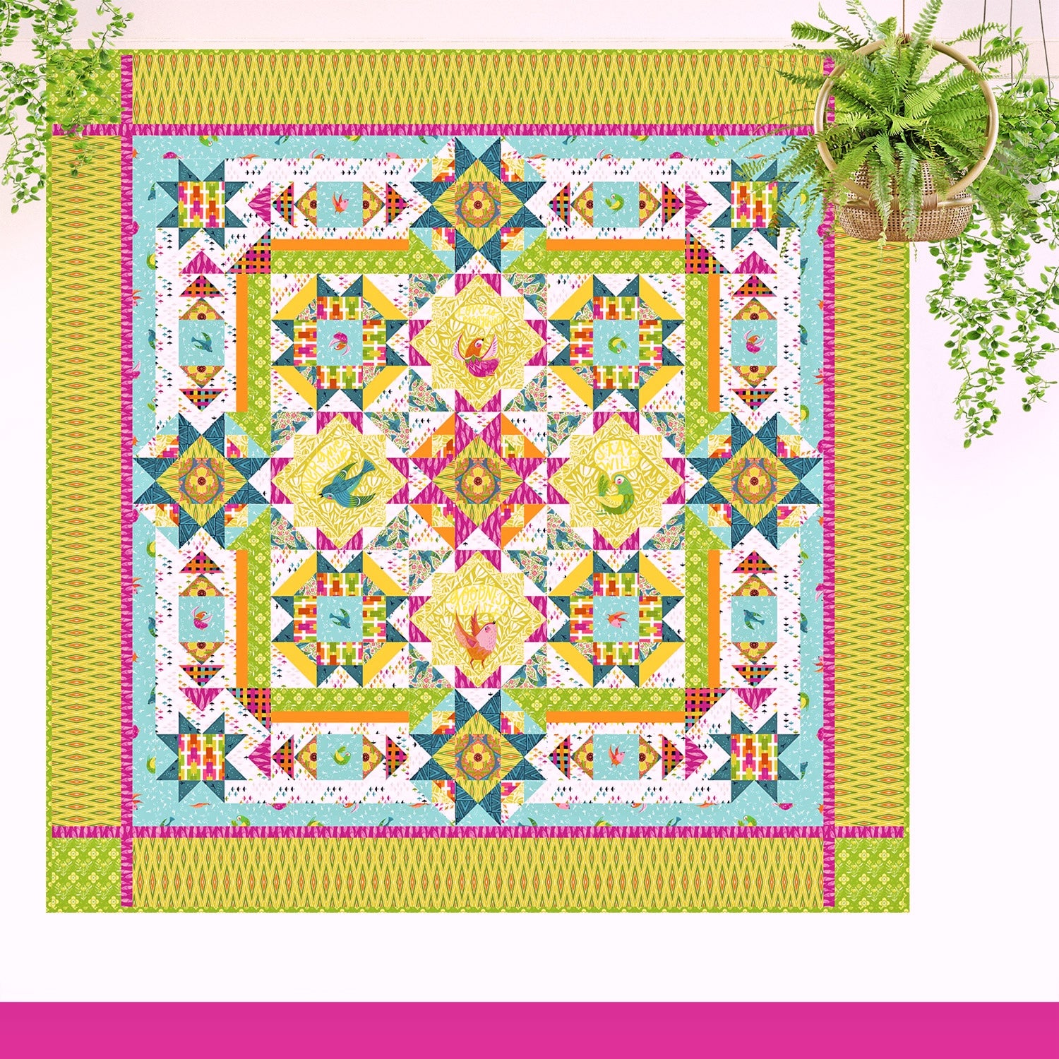 The 'Untamed Garden' quilt was made for Freespirit Fabrics and Tula Pink using the "Untamed" fabric collection.