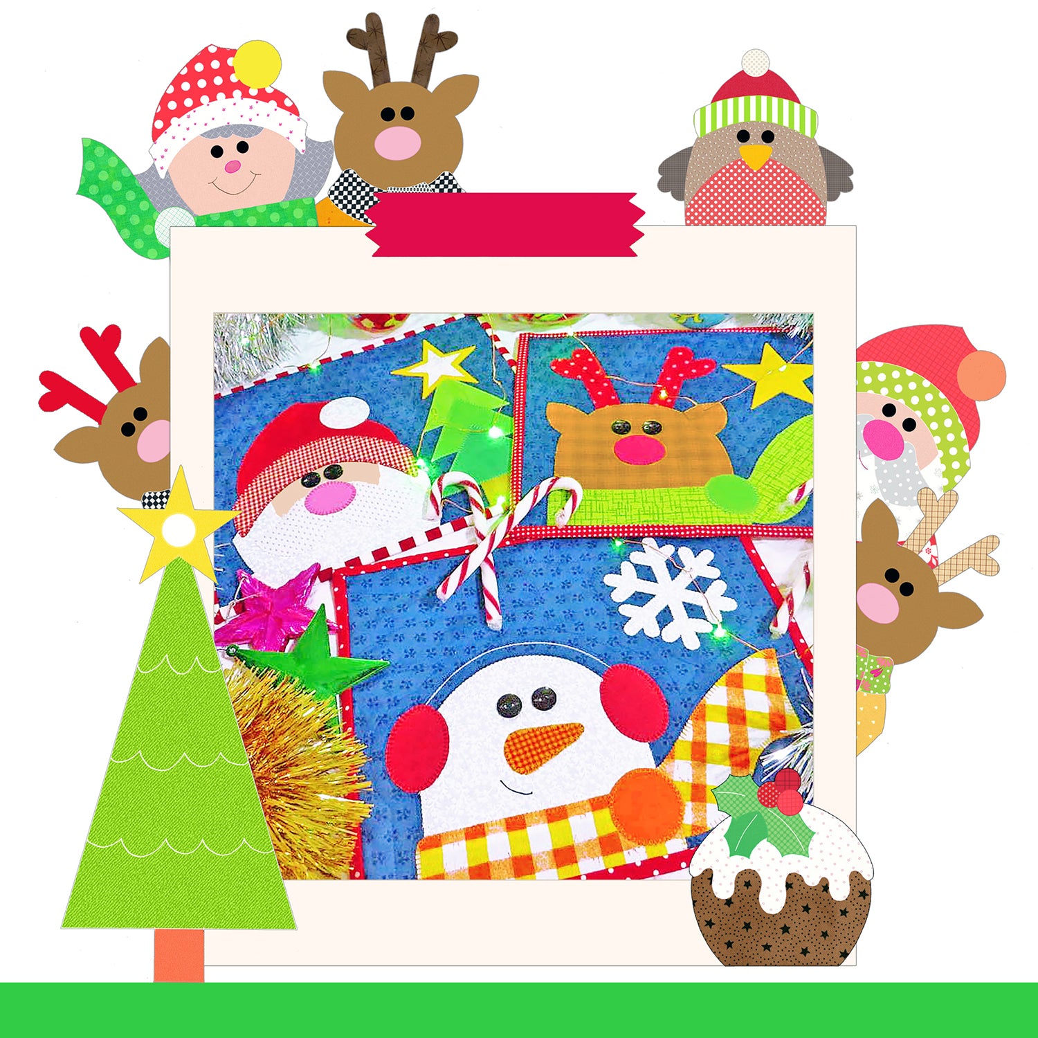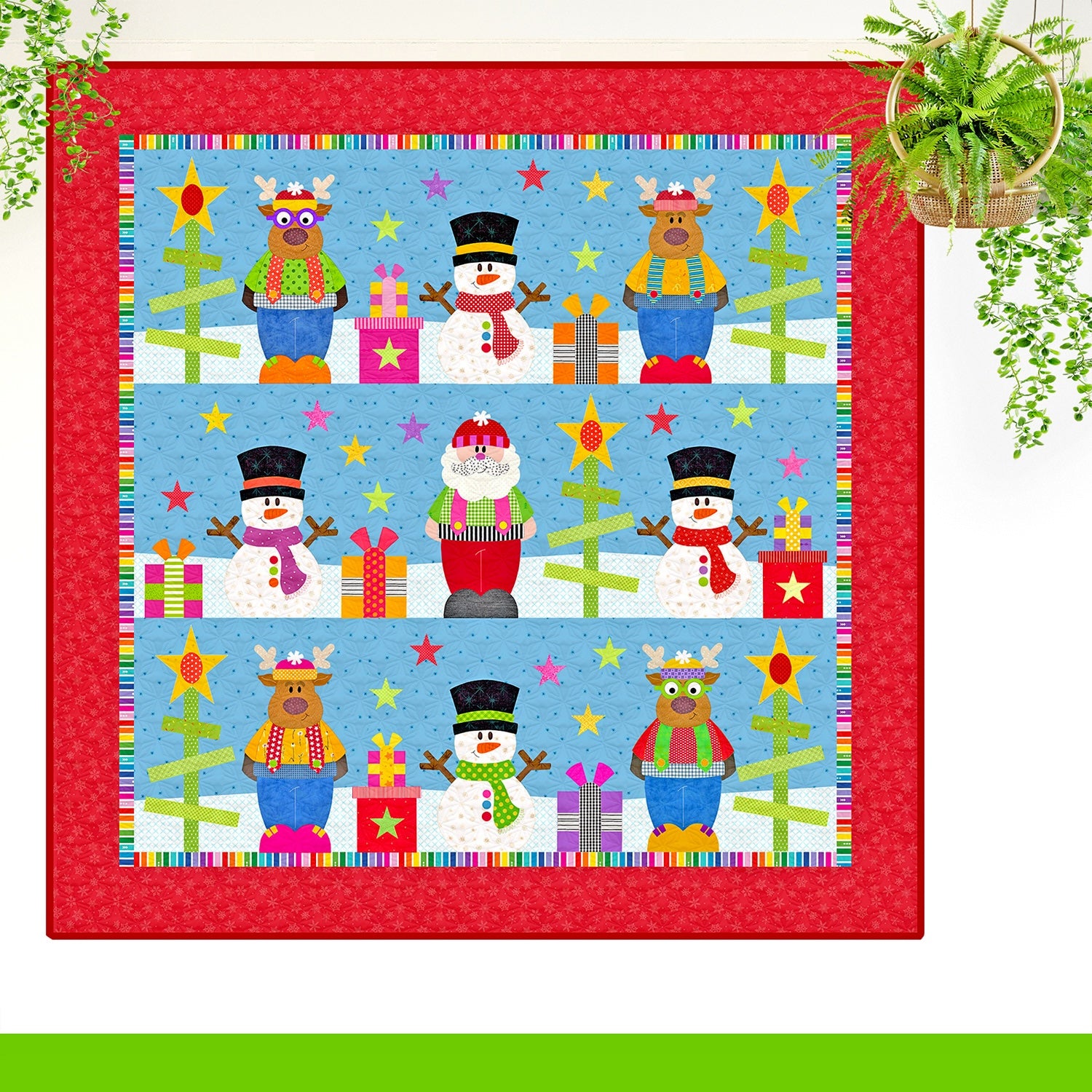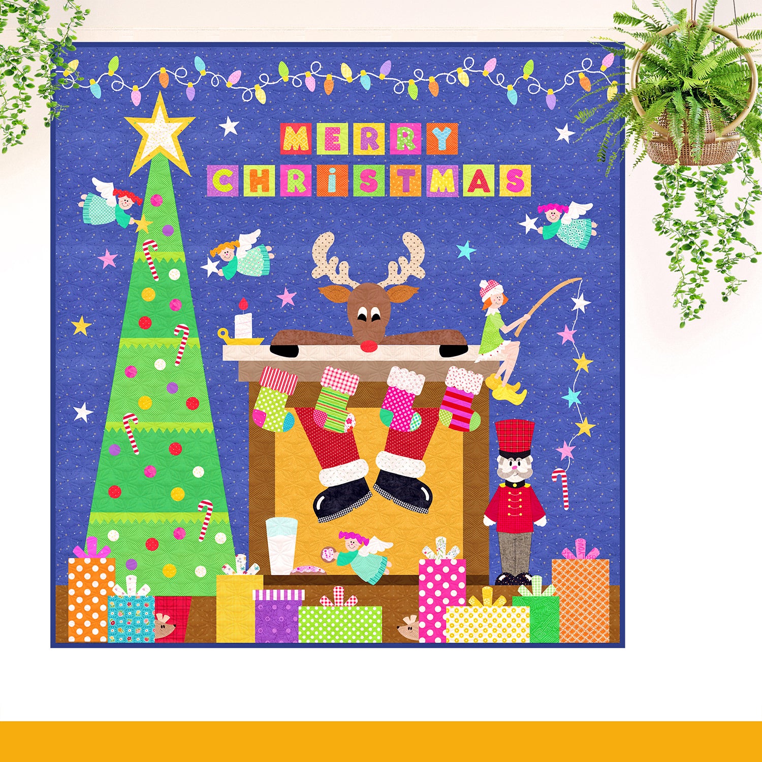 The pattern includes the templates for a winter Christmas quilt or a summer Christmas quilt.