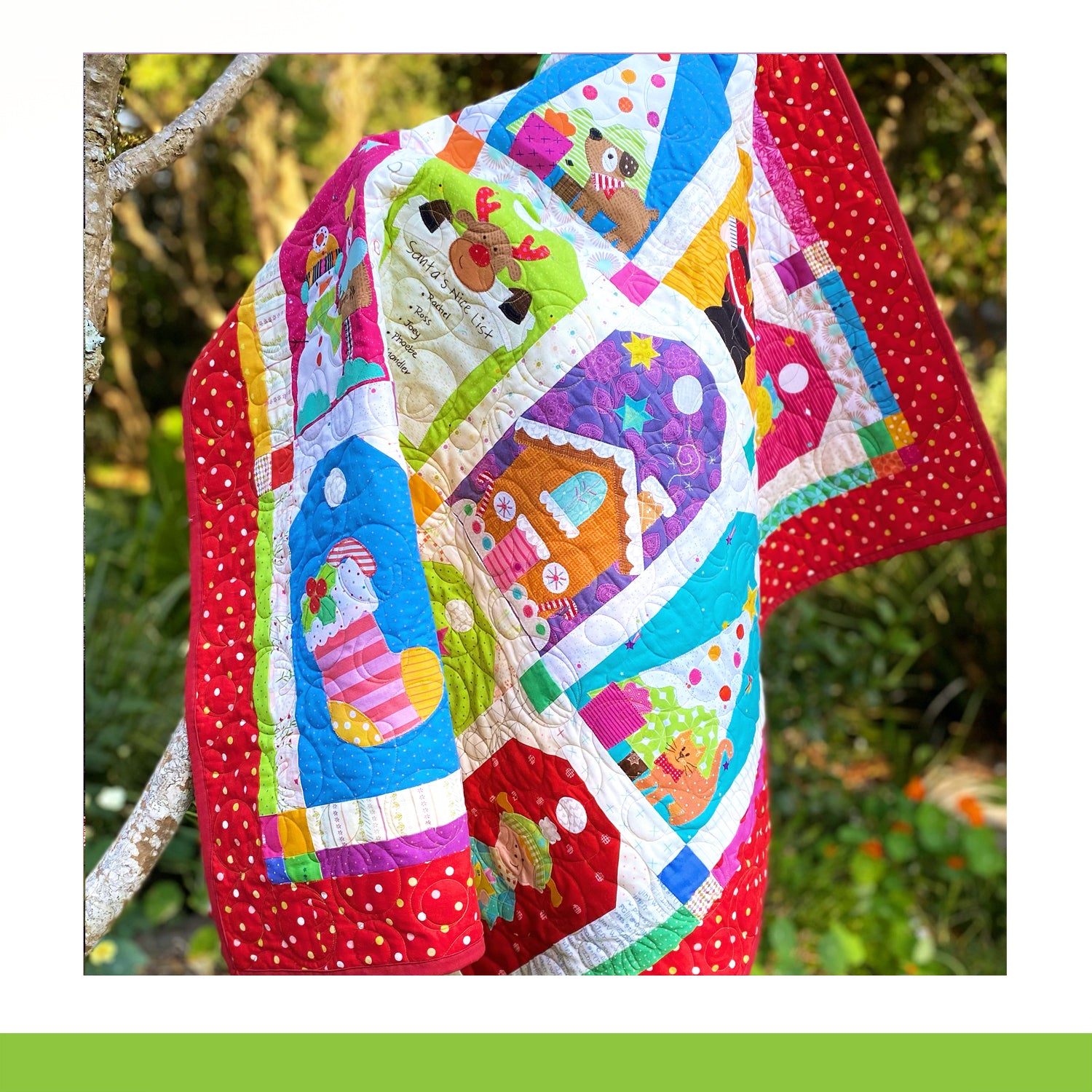 The pattern includes the templates for a winter Christmas quilt or a summer Christmas quilt.