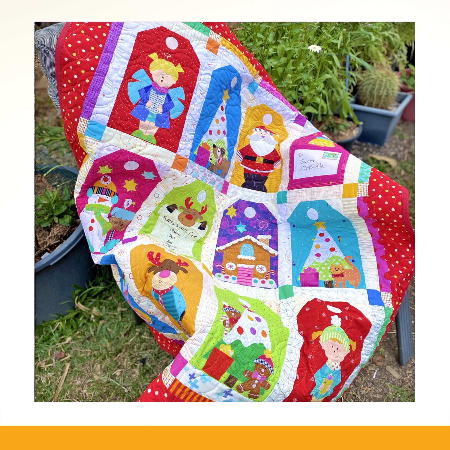 The project uses easy fusible applique techniques, simple stitching, and piecing.