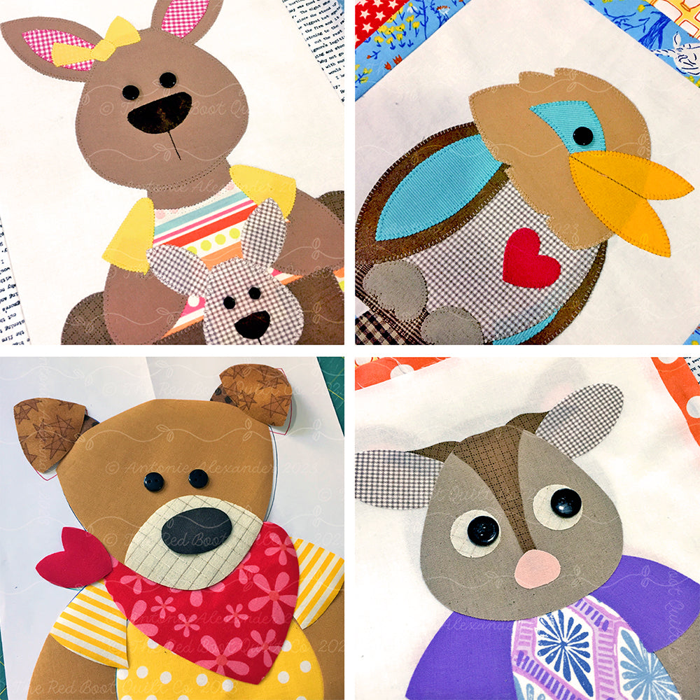 The pattern is for one person use only. Do not copy, redistribute or sell. You may sell quilts or toys made using this pattern on a small independent scale. Please credit the project pattern to Antonie Alexander, The Red Boot Quilt Co.